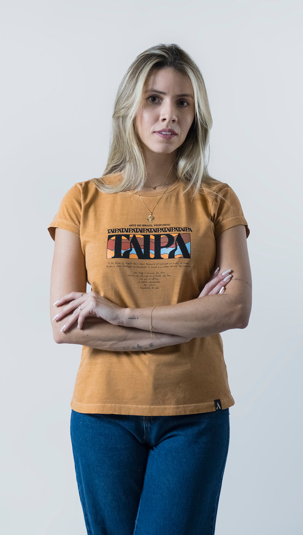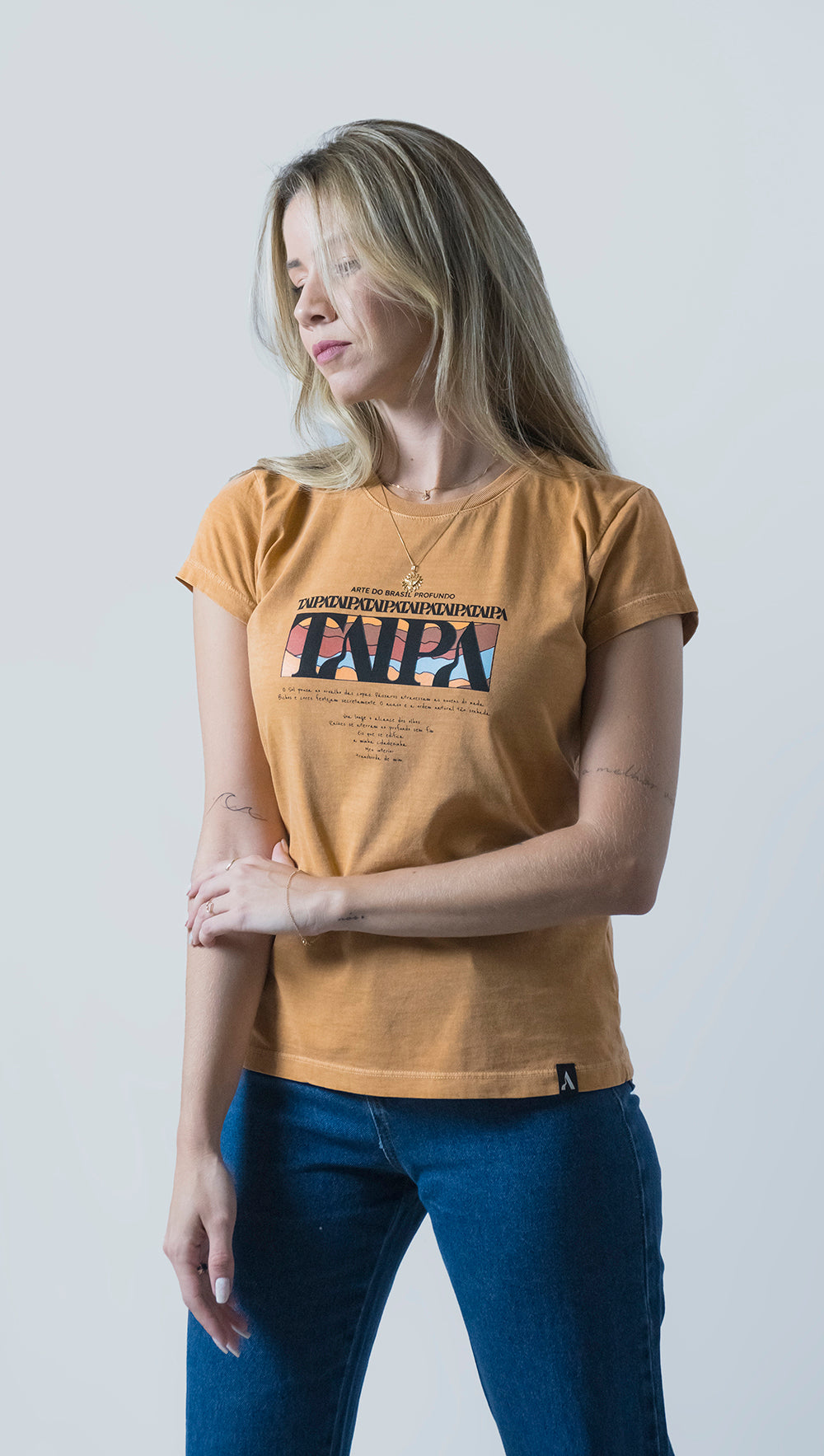 A Baby Look Taipa Versos é perfeita para todas as ocasiões. Permite inúmeras combinações de visual. Também se basta plenamente sozinha, garantindo, graças a combinação sutil e luminosa de suas cores, um visual básico de destaque. Uma poesia a ser vestida.