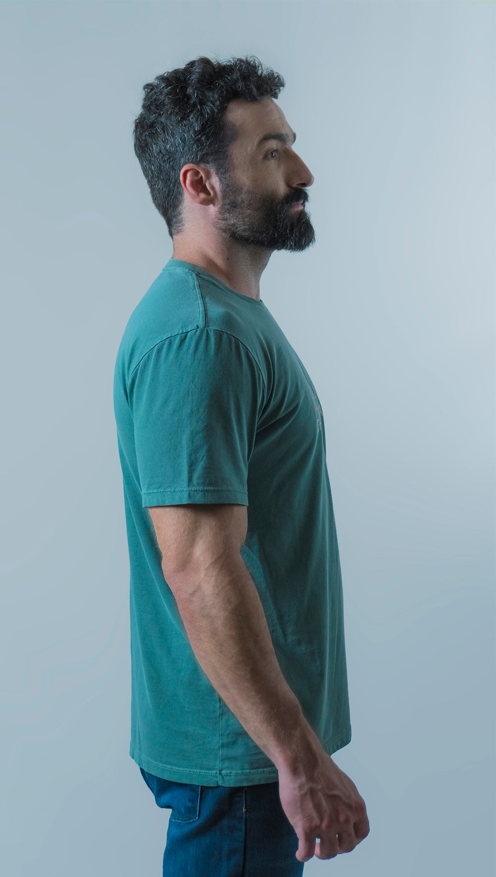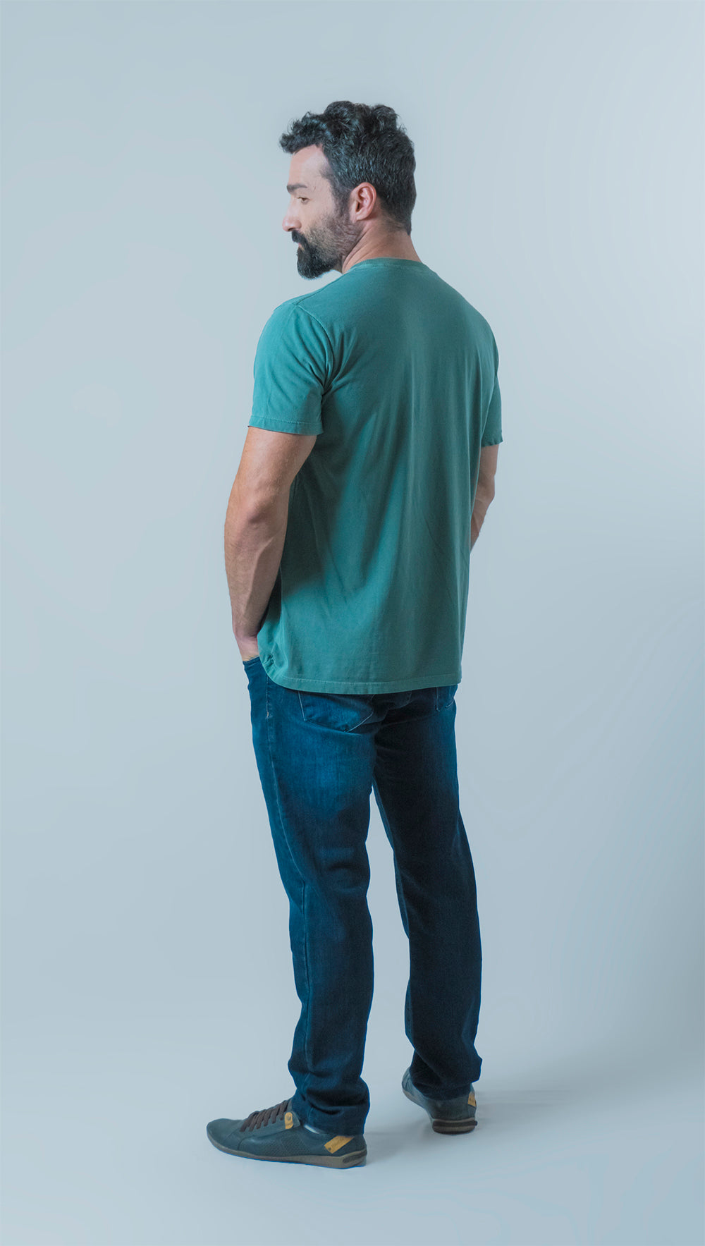 Sua matéria prima nobre, algodão 30.1 Penteado Premium e a costura na gola com reforço de ombro a ombro proporcionam a maciez no toque e a durabilidade prolongada. A lavagem Estonada, obedece às normas de respeito ao meio ambiente e, esteticamente, garante à peça um ar Vintage. A modelagem é de corte atemporal e caimento leve. Servindo também para ser usada por mulheres como uma peça ligeiramente mais solta.