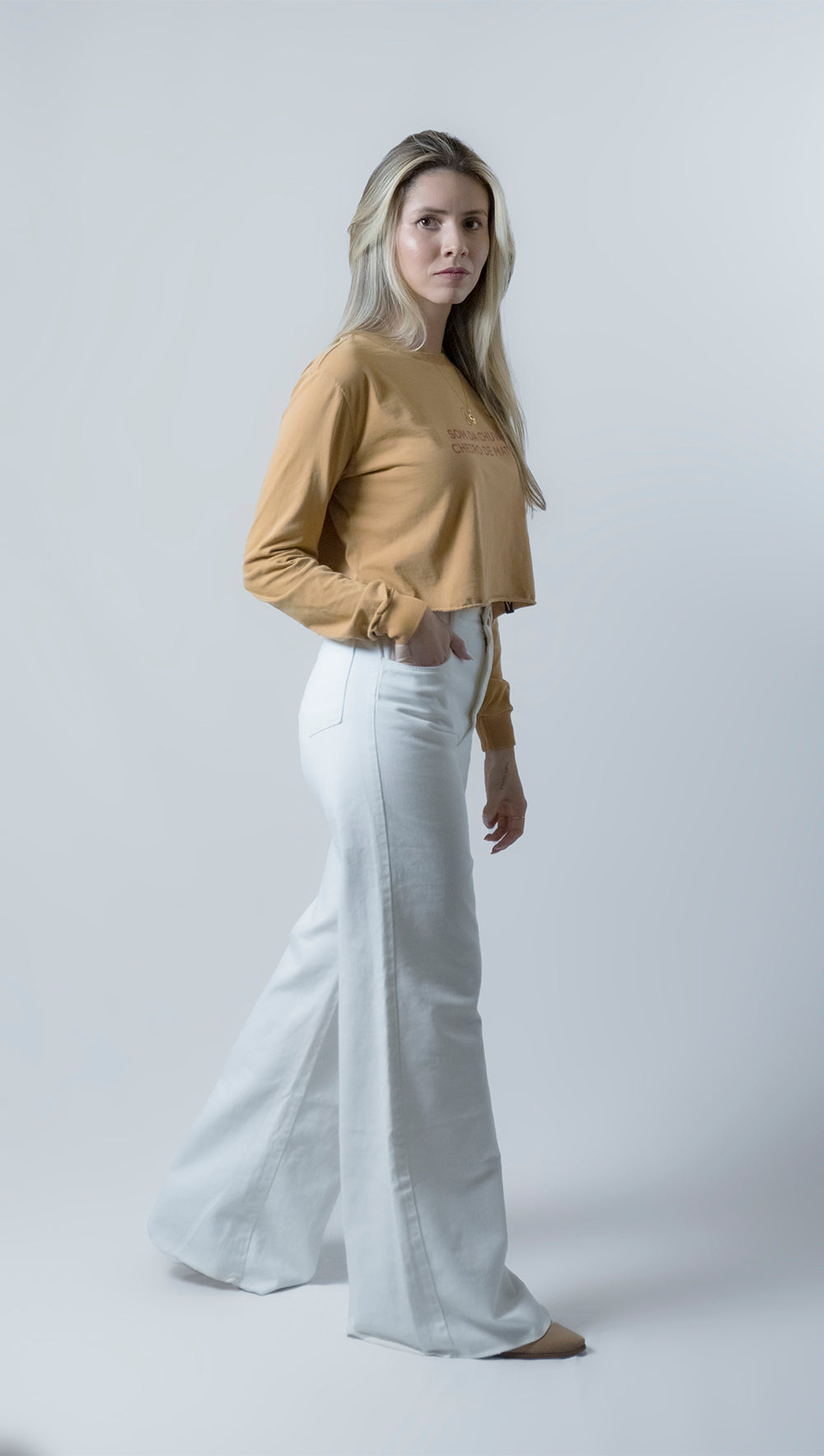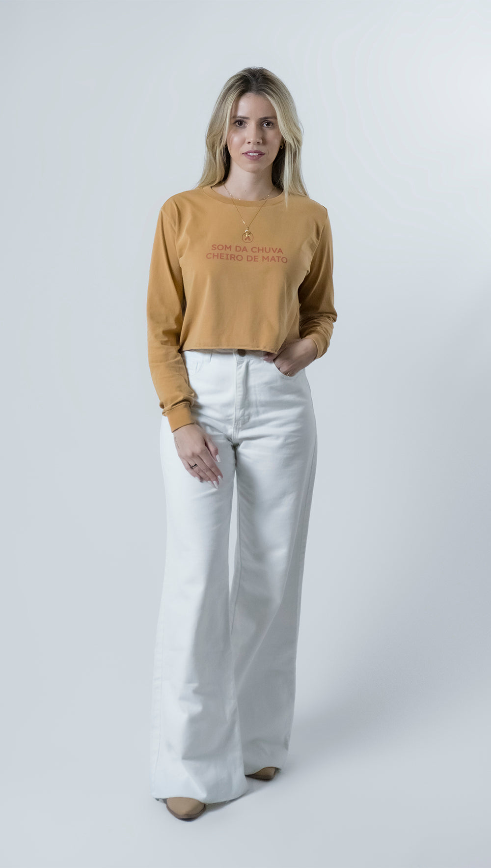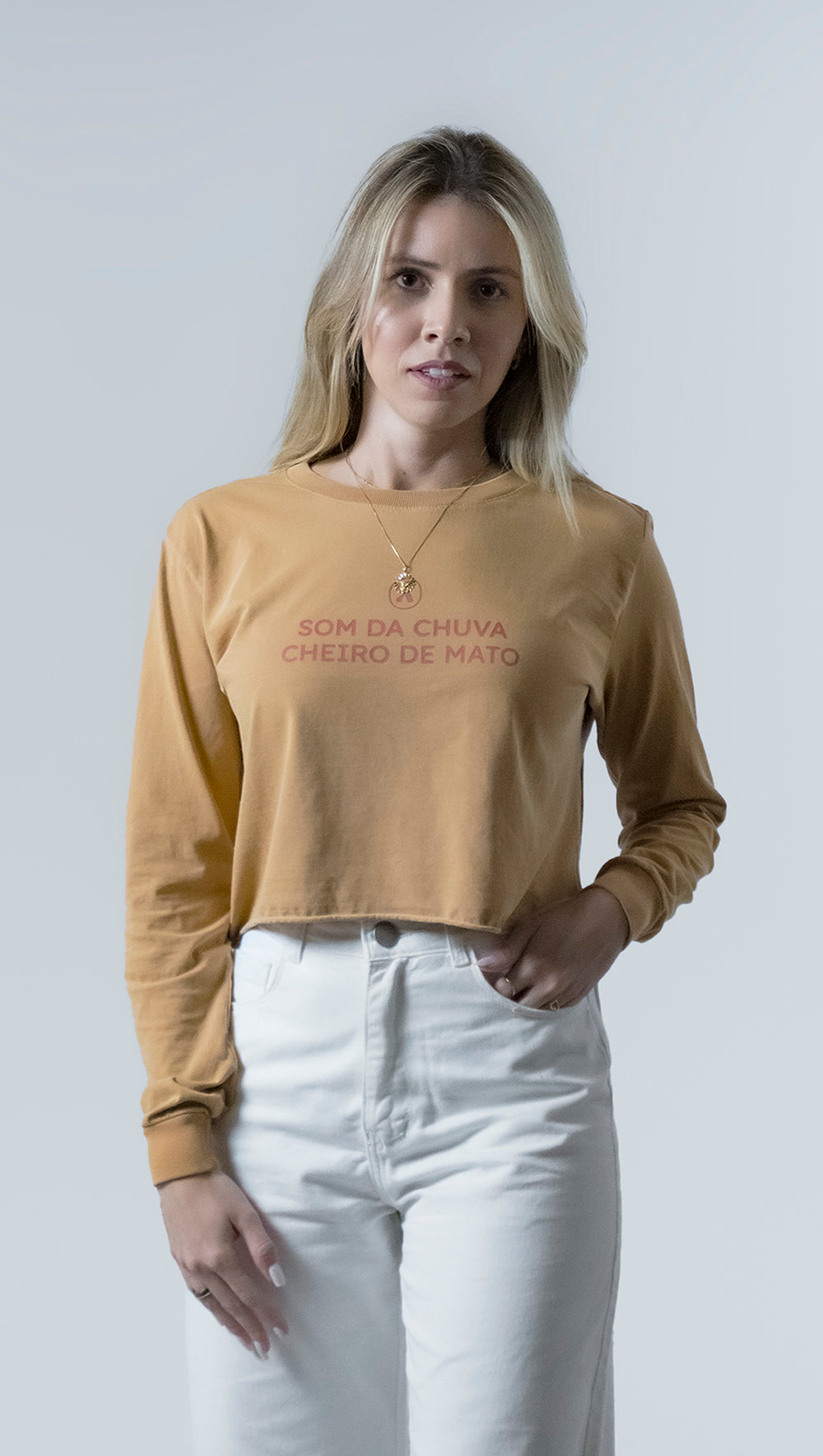 O Cropped Som da Chuva é para todas as horas. Permite uma infinidade de visuais seja para climas de frio ameno como para ocasiões de calor moderado. É uma peça que emana tranquilidade, descontração e que reconhece a poesia presente nas pequenas coisas.